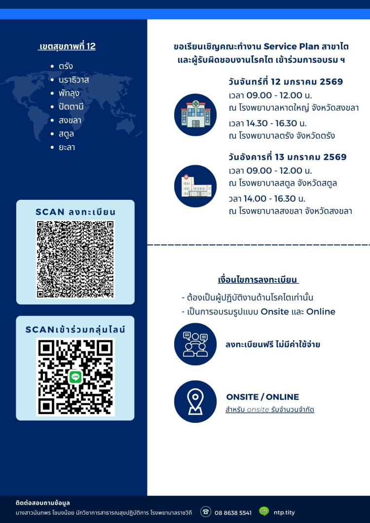 - วันจันทร์ที่ 12 มกราคม 2569 ณ โรงพยาบาลหาดใหญ่ จังหวัดสงขลา และโรงพยาบาลตรัง จังหวัดตรัง