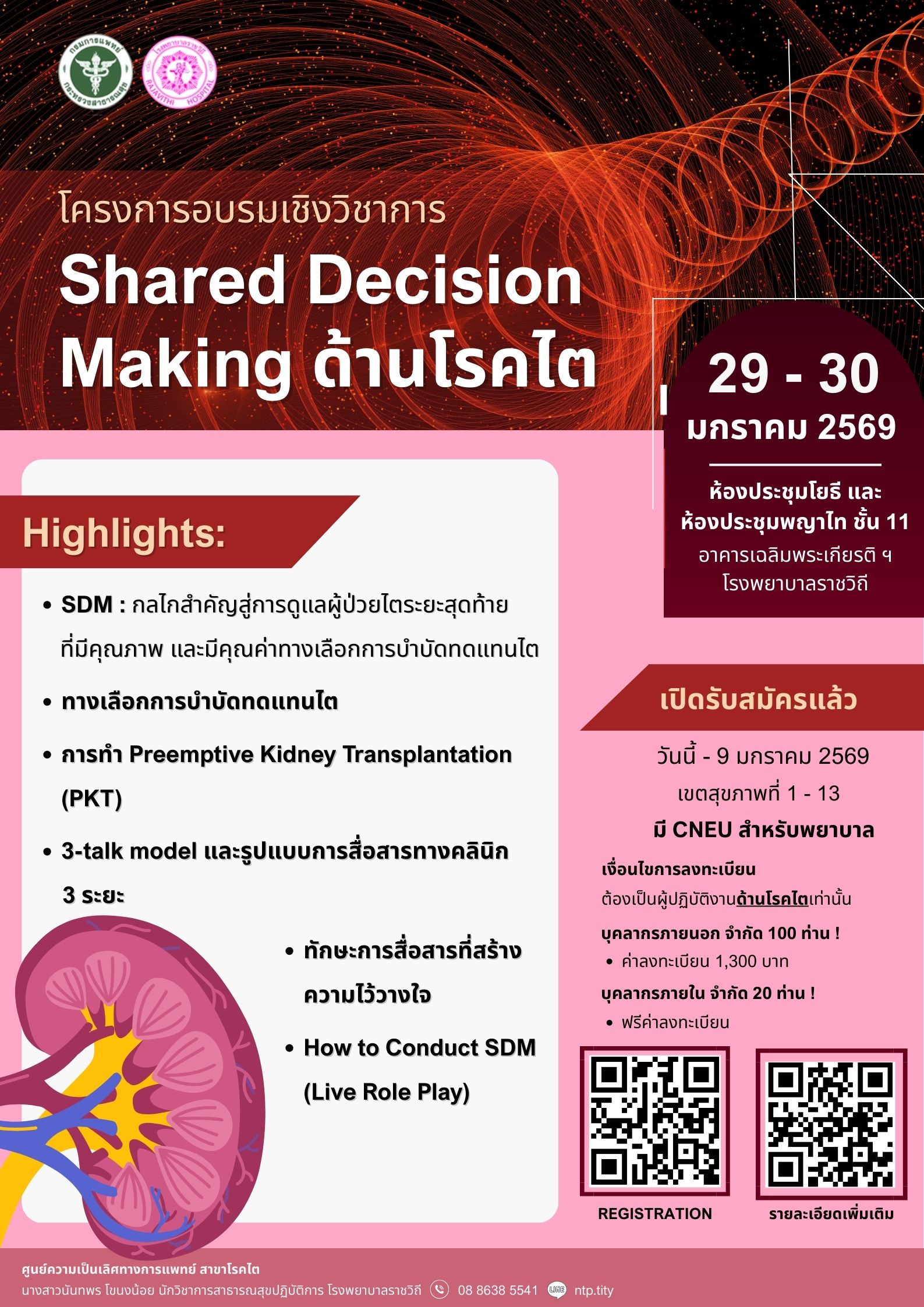 - สำหรับบุลากรภายในโรงพยาบาลราชวิถี : ฟรีค่าลงทะเบียน