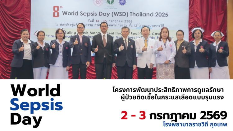 นายแพทย์สกานต์ บุนนาค รองอธิบดีกรมการแพทย์ เป็นประธานในพิธีเปิดการอบรม World Sepsis Day Thailand 2025 และ Rapid Response Team Conference in Thailand ครั้งที่ 8 Thai Sepsis Conference 2025 : Navigating Sepsis Management through Real-World Cases “Case Scenarios : Bridging Thai Sepsis Guidelines to Bedside Practice” ผ่านทางระบบออนไลน์ โดยมี แพทย์หญิงอรศิริ เสรีรัตน์ รองผู้อำนวยการด้านพัฒนาระบบสุขภาพ โรงพยาบาลราชวิถี เป็นผู้กล่าวรายงาน ซึ่งโครงการดังกล่าว โรงพยาบาลราชวิถี กรมการแพทย์ ร่วมกับ สมาคมเวชบำบัดวิกฤตแห่งประเทศไทย และหน่วยงานทางการแพทย์ จัดขึ้นในระหว่างวันที่ 14-15 กรกฎาคม 2568 เพื่อเสริมสร้างความรู้และพัฒนาแนวทางปฏิบัติในการดูแลผู้ป่วย Sepsis ให้เป็นมาตรฐานเป็นปัจจุบัน รวมทั้งเพื่อแลกเปลี่ยนเรียนรู้การดูแลผู้ป่วย Sepsis ให้มีประสิทธิภาพมากยิ่งขึ้น โดยได้รับเกียรติจากวิทยากรผู้เชี่ยวชาญด้าน Sepsis ทั้งในเด็กและผู้ใหญ่ รวมถึงด้าน Rapid Response System ที่มาบรรยายให้ความรู้แก่ผู้เข้าร่วมอบรม ณ ห้องประชุมพิบูลสงคราม ชั้น 12 อาคารเฉลิมพระเกียรติฯ โรงพยาบาลราชวิถี เมื่อวันที่ 14 กรกฎาคม 2568